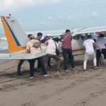 Pangandaran, PWPM NEWS.web.id – Pesawat jenis capung mendarat darurat di pesisir pantai sebelah Barat kawasan Kampung Turis Pangandaran pada, Minggu 20 April